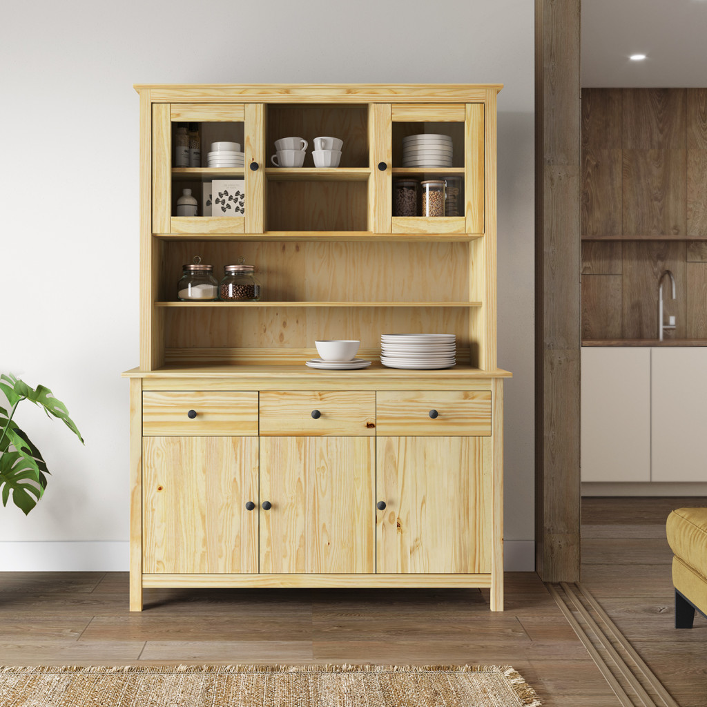 Dotaz na produkt Na splátky ještě dnesmateriál masiv borovice, lakované provedení kovové úchytky v barevném provedení černěná mosaz dvoje prosklená dvířka doplněk příborníku TORINO 8062K