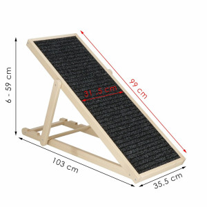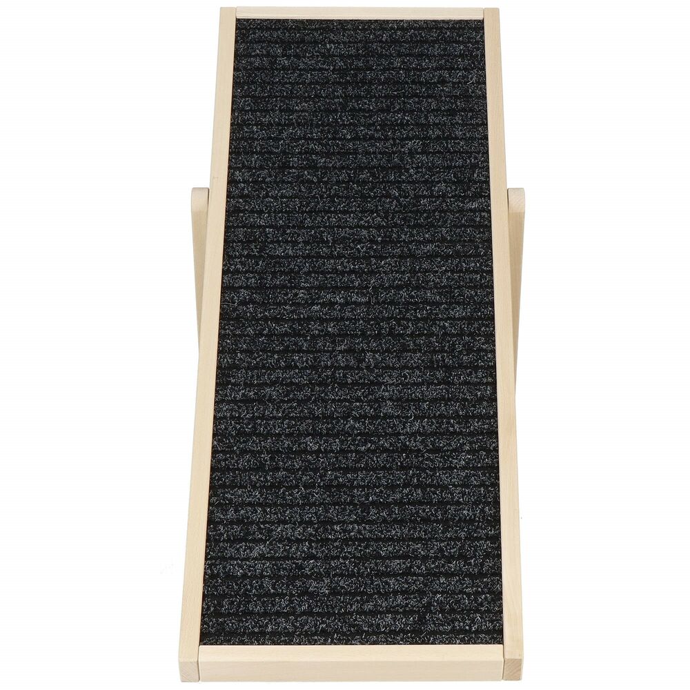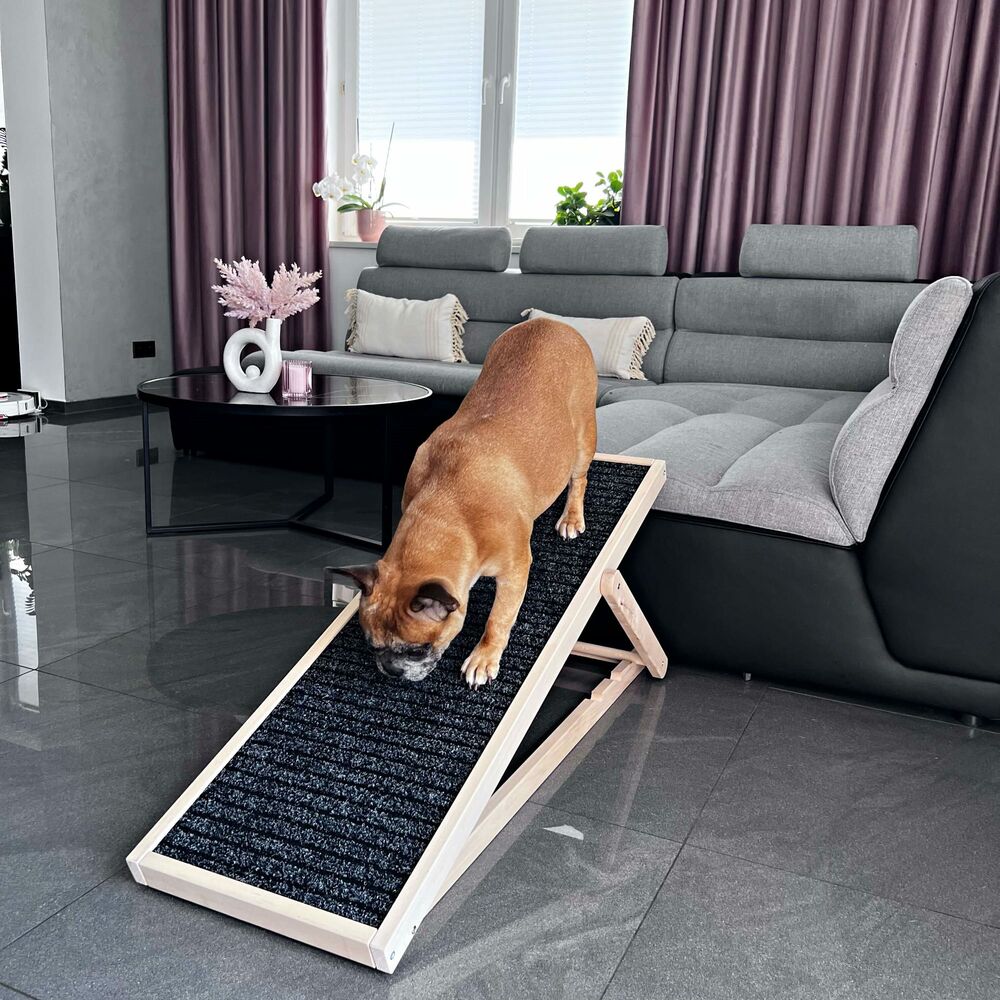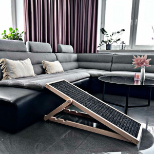 Rampa pro psy s nastavitelnou výškou 42,5 - 52,5 - 59 cm. Pevný a odolný materiál. Protiskluzový koberec, lehká konstrukce, snadná přeprava i skladování. Zlepšuje každodenní život vašeho mazlíčka. Přepravní rozměry 99x35,5x7,5 cm (dxšxv)