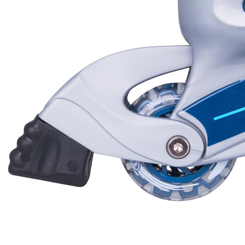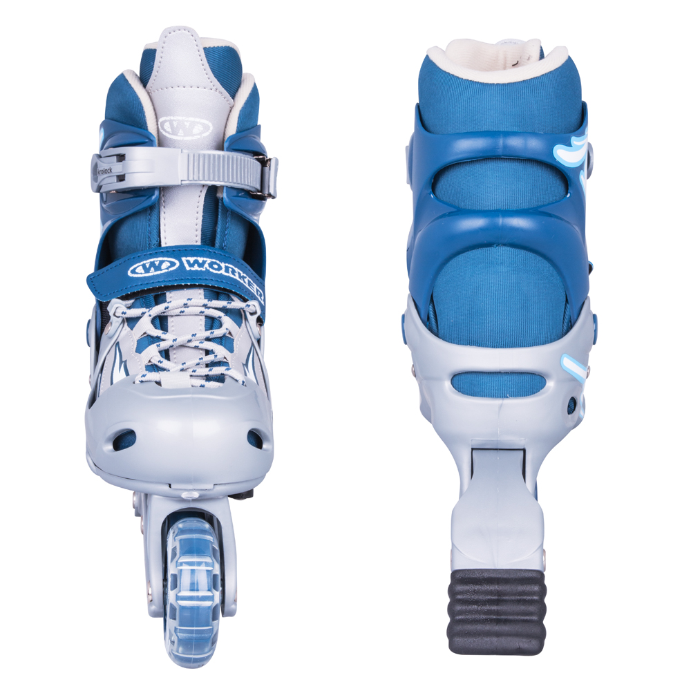 Dotaz na produktNastavitelné brusle WORKER JunyBoy jsou pohodlné in-line brusle s možností nastavení velikosti pomocí jednoduchého mechanismu. Bytelný plastový podvozek a kolečka s ložisky 608Z poskytují dobré jízdní vlastnosti. Šněrování, bezpečnostní přezka a zapínání na suchý zip umožňují pohodlné nazouvání a vyzouvání bruslí a bezpečné obepnutí chodidla v bruslích.
