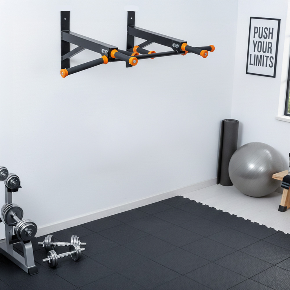 Stabilní ukotvení hrazdy a nosnost až 120 kg vám dodají potřebnou jistotu. S promyšlenými rozměry a vzdáleností od zdi budete mít dostatek prostoru pro plný rozsah pohybu.