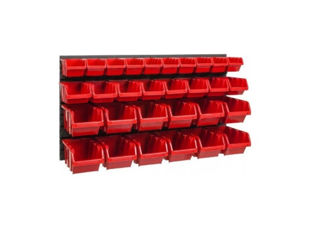 Sada k doplnění nástěnných organizerů ORDERLINE s dělenou nástěnnou deskou 800x392mm a 30 plastových boxů v červeném barevném provedení. Slouží k uskladnění šroubků, matic, podložek a jiných drobností. Ideální do dílny či garáže, 800x392x195