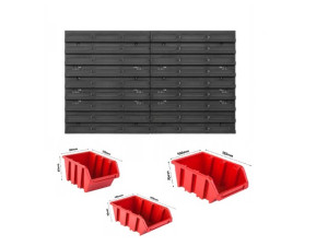 Sada k doplnění nástěnných organizerů ORDERLINE s dělenou nástěnnou deskou 800x392mm a 24 boxy ve 3 rozměrech, snadné umístění na zeď a následně rozmístíte otevřené boxy na nářadí a drobné součástky, sadu je možné rozšiřovat o jednotlivé prvky a nebo kombinovat s ostatními sadami KOR 1-6, 800x395x195mm