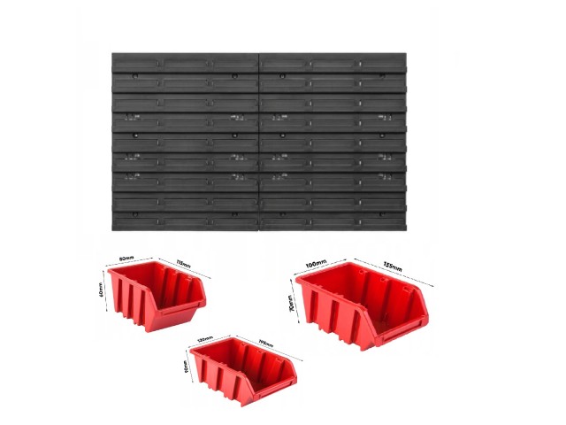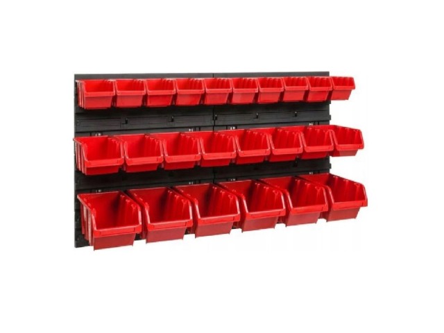 Dotaz na produktNástěnný organizér na nářadí Kinstenberg. Jedná se o organizér, který umístíte na zeď a následně zde upevníte otevřené boxy na nářadí a drobné součástky. Boxy přiloženy.Do boxů pak umístíte dle potřeby vybavení své dílny jako jsou vruty, hřebíky, šrouby a obdobný materiál v několika řadách a sloupcích.