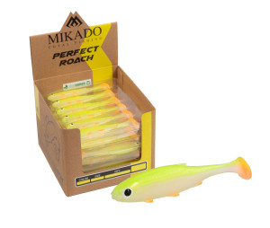 Dotaz na produkt Na splátky ještě dnesPerfect Roach je nástraha, která si už při prvních testech získala uznání rybářů po celém světě díky své neobyčejné účinnosti při lovu candátů, okounů, štik a bolenů. Kombinace správně zvolené směsi ekologického a měkkého silikonu bez ftalátů (Phthalates free), spolu s ručním lakováním nejvyšší kvality, umožnila firmě Mikado vytvořit nejvěrnější imitaci plotice, jaká je na trhu dostupná. Nástraha se vyznačuje vynikající prací v jakýchkoli podmínkách, bez ohledu na použitou hmotnost jigové hlavičky, díky čemuž žádný dravec kolem ní nepropluje lhostejně!