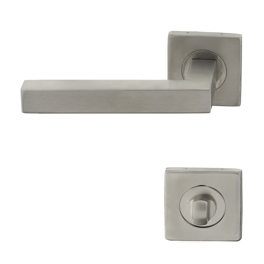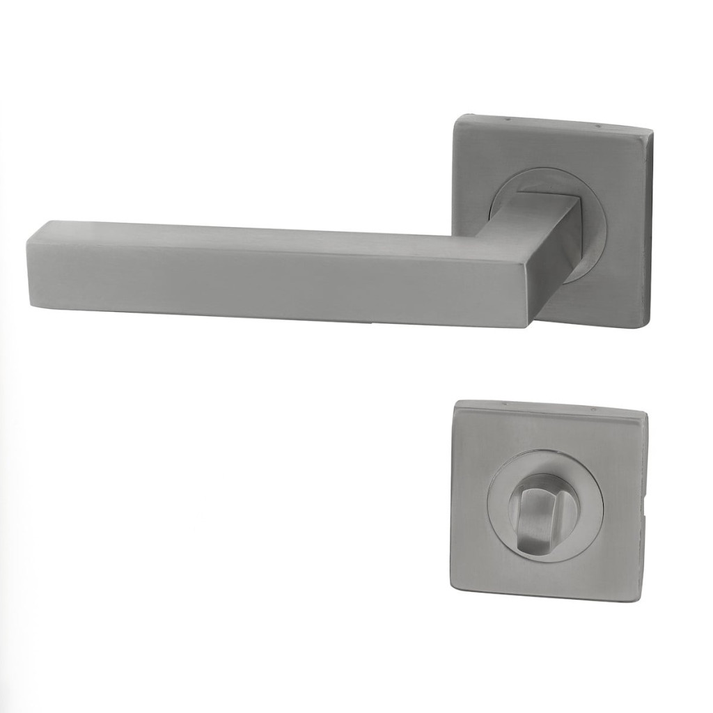 Dotaz na produktModerní hranatý tvar kliky i rozety se hodí do dokonale ke každým dveřím. Celokovová konstrukce s výstupky pro vzájemné sešroubování skrz dveře. WC knoflík pro pohodlné uzamykání koupelny i toalety.
