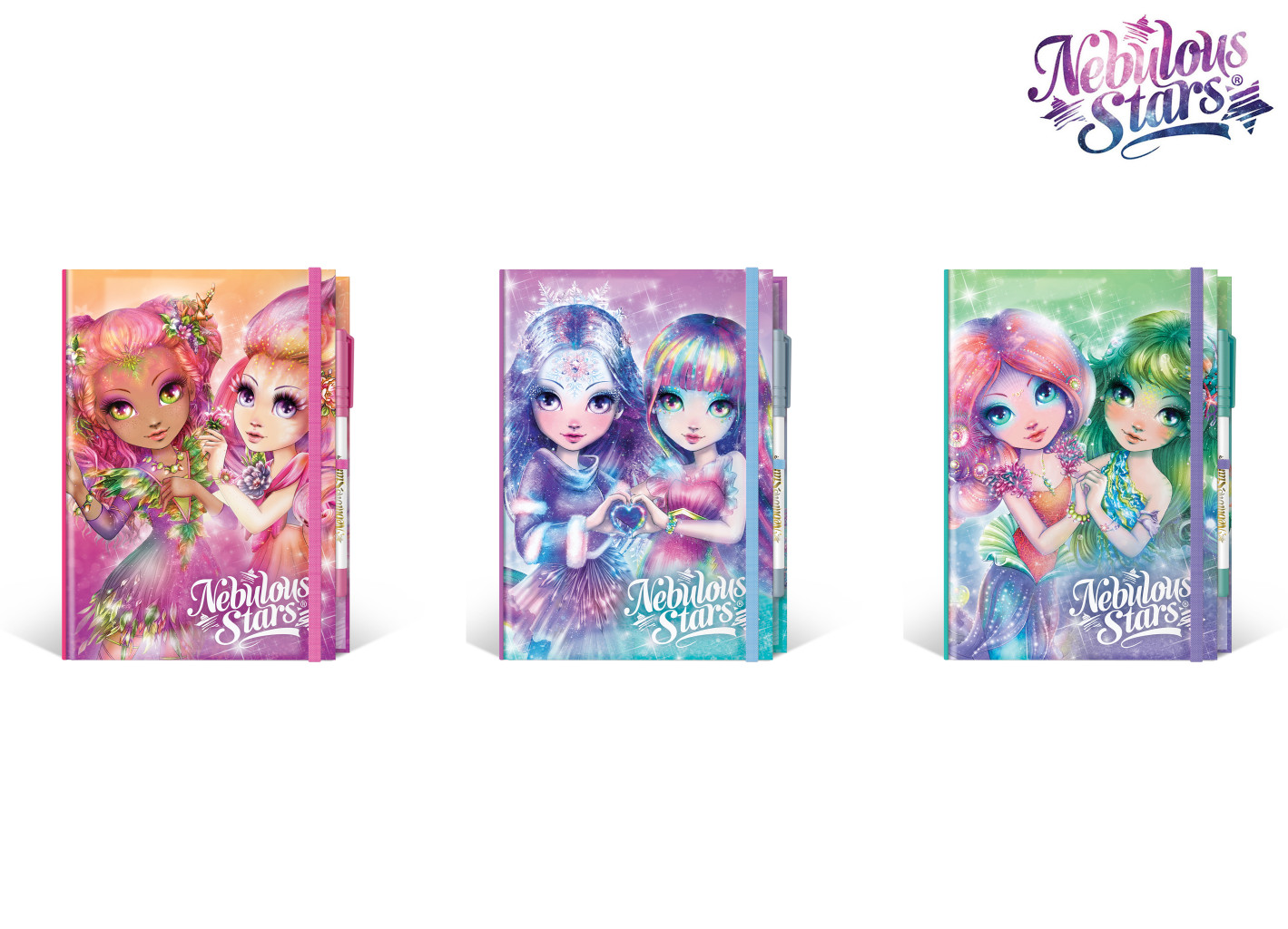 Dotaz na produktNebulous Stars deníček. Velikost 20x15 cm. Deníček s bílými stránkami, 96 stran, pero. Display box - 6 ks. 3 varianty - bílá, fialová, růžová.
