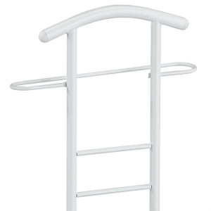 Dotaz na produkt Na splátky ještě dnesNěmý sluha v bílém laku kombinuje kovové tělo s praktickým sedákem z MDF v dekoru černý dub, který dodává celku příjemný kontrast. Výška 119 cm nabízí dostatek prostoru pro zavěšení oděvů či doplňků, zatímco pevná kovová základna zajišťuje stabilitu a nosnost až 90 kg. Design s několika příčkami umožňuje efektivní uspořádání oblečení a doplňků, což z něj činí funkční doplněk do ložnice či předsíně. Povrchová úprava kovu bílým práškovým lakem přispívá k dlouhé životnosti a snadné údržbě. Díky kompaktním rozměrům je vhodný i do menších prostor.