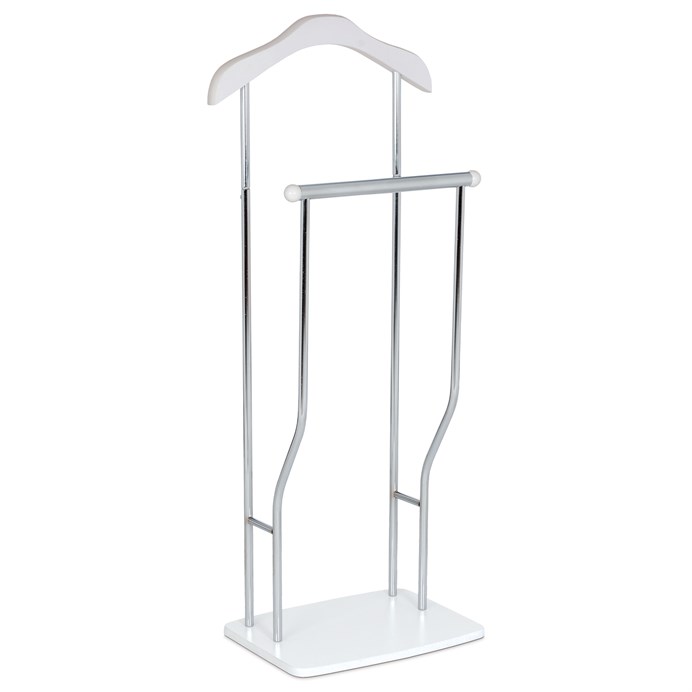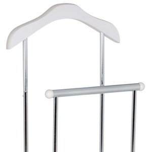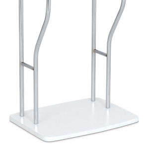 Dotaz na produktNěmý sluha v bílém matném laku z MDF a s chromovanými kovovými prvky nabízí praktické řešení pro uložení oblečení a doplňků. Jeho pevná základna zajišťuje stabilitu, zatímco horní část ve tvaru ramínka umožňuje zavěšení košil, sak či kalhot. Kompaktní výška 108 cm usnadňuje umístění v ložnici nebo předsíni, přičemž nosnost do 5 kg odpovídá běžné domácí potřebě. Design kombinuje jednoduchost a funkčnost, což ocení každý, kdo hledá nenáročný způsob organizace oblečení.