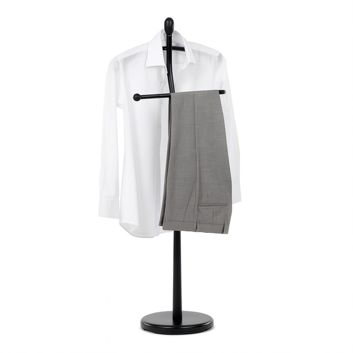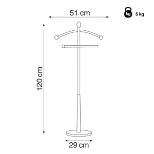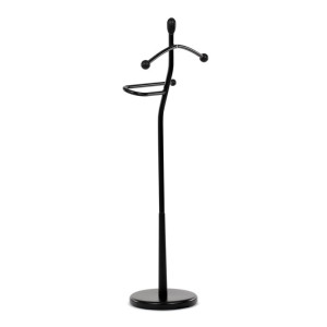 Dotaz na produktPraktický minimalistický němý sluha v sobě kombinuje prvky z masivního kaučukovníkového dřeva s kovovými nosnými díly v černé povrchové úpravě. Tento model je v celočerném provedení. Výška 120 cm Vám umožní zavěšení oblečení i doplňků zcela bez pomačkání. Nosnost stojanu je až 5 kg rovnoměrně rozprostřené zátěže, hmotnost 5 kg. Konstrukce je zakončena kovovou chromovanou podestou se zátěží v černém plastovém pouzdře. Stojan je jednoduše přenositelný a lze ho umístit podle momentální potřeby i nálady. Stylem a jednoduchostí se hodí do jakéhokoli interiéru. Využití je nepřeberné, záleží jen na Vás.