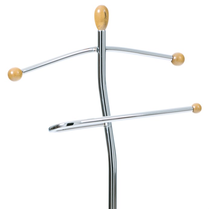 Dotaz na produktPraktický minimalistický němý sluha v sobě kombinuje prvky z masivního kaučukovníkového dřeva s kovovými nosnými díly v chromované povrchové úpravě. Tento model je v přírodním provedení, lakovaný kvalitním transparentním lakem. Výška 120 cm Vám umožní zavěšení oblečení i doplňků zcela bez pomačkání. Nosnost stojanu je až 5 kg rovnoměrně rozprostřené zátěže, hmotnost 5 kg. Konstrukce je zakončena kovovou chromovanou podestou se zátěží v černém plastovém pouzdře. Stojan je jednoduše přenositelný a lze ho umístit podle momentální potřeby i nálady. Stylem a jednoduchostí se hodí do jakéhokoli interiéru. Využití je nepřeberné, záleží jen na Vás.