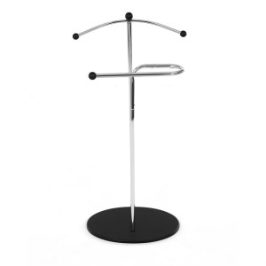 Dotaz na produktNěmý sluha 83213 CR(BK) značky Autronic je praktický bytový doplněk s výškou 110 cm, který kombinuje pevnost kovové konstrukce s elegantním designem. Rám je vyroben z chromovaného kovu, který zajišťuje vysokou odolnost proti opotřebení a stabilitu, zatímco základna je z masivního kaučukovníku s černým mořením, což dodává produktu robustní a zároveň estetický vzhled. Konstrukce nabízí několik ramínek zakončených černými plastovými koncovkami, které umožňují bezpečné zavěšení oděvů, obleků či doplňků bez poškození materiálu. Pevná základna zajišťuje stabilitu i při větším zatížení a díky kompaktním rozměrům je vhodný do ložnic, šaten nebo kanceláří. Povrchová úprava chromu a černého moření podtrhuje moderní styl a snadnou údržbu produktu.