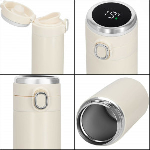 Nerezová termoska s teploměrem 420 ml SPRINGOS THERMOS krémová je ideální volbou pro všechny, kteří si chtějí svůj oblíbený nápoj vychutnat v optimální teplotě po celý den.