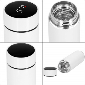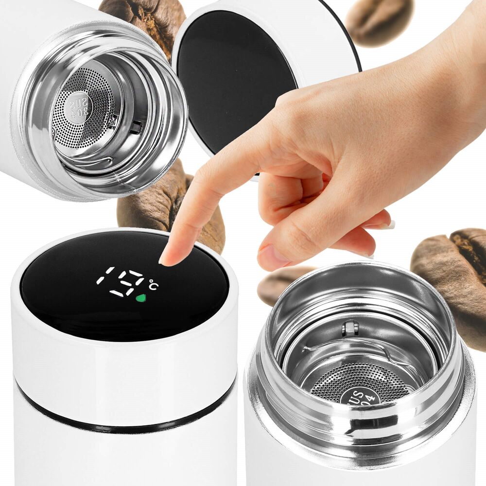 Praktická termoska s objemem 500 ml je ideální pro každodenní používání doma, v práci i na cestách. Udrží horké i studené nápoje až 12 hodin a díky integrovanému digitálnímu displeji na víčku umožní rychlou kontrolu aktuální teploty pouhým dotykem. Těsné provedení zabraňuje protékání a vnitřní sítko usnadňuje přípravu čaje či bylinkových nápojů. Elegantní vzhled doplňuje vysoký komfort používání.