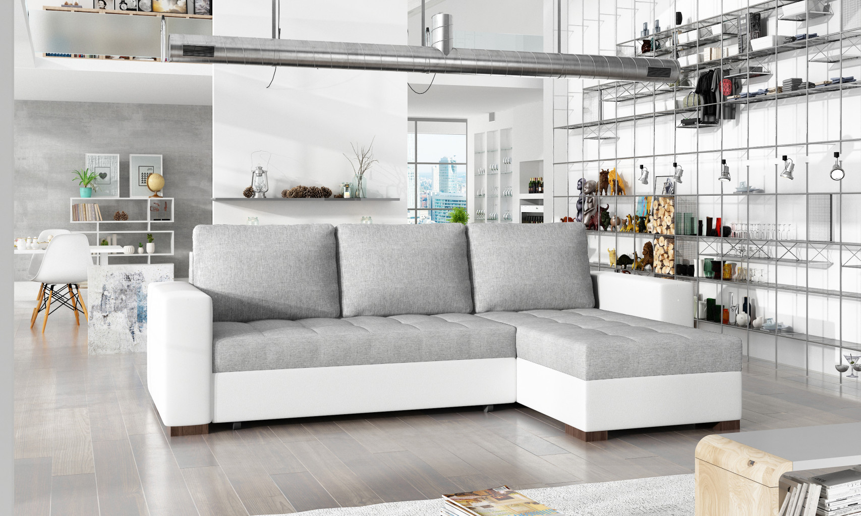 Dotaz na produkt Na splátky ještě dnesNewark je elegantní, klasická a minimalistická rohová pohovka s rozměry 237 x 150 x 90 cm, která se perfektně hodí do jakéhokoli interiéru bez ohledu na jeho velikost. Sedák našeho nábytku je vyplněn bonellem a pěnou T25, což poskytuje maximální pohodlí při každodenním používání. Další výhodou nábytku je jeho přizpůsobení funkci spaní a dva zásobníky na ložní prádlo. Po rozložení nábytku pomocí automatu DL získáme postel o rozměrech 195 x 125 cm. Mezi jeho charakteristické rysy patří: čalouněná opěradla, prostorné polštáře a prošívání sedáků.Látky: Sawana 21, Soft 17