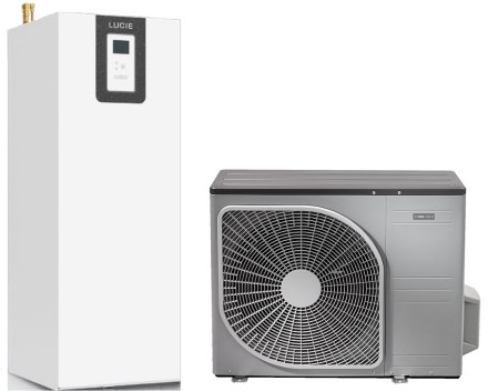 - kombinace tepelného čerpadla NIBE AMS 10 s kompaktní vnitřní jednotkou LUCIE 200 SPLIT tvoří kompletní systém vytápění a ohřevu vody