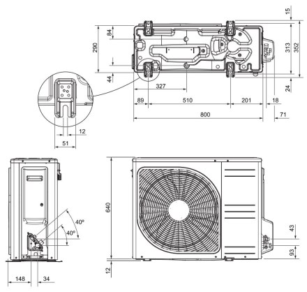 Šířka venkovní jednotky (mm): 800