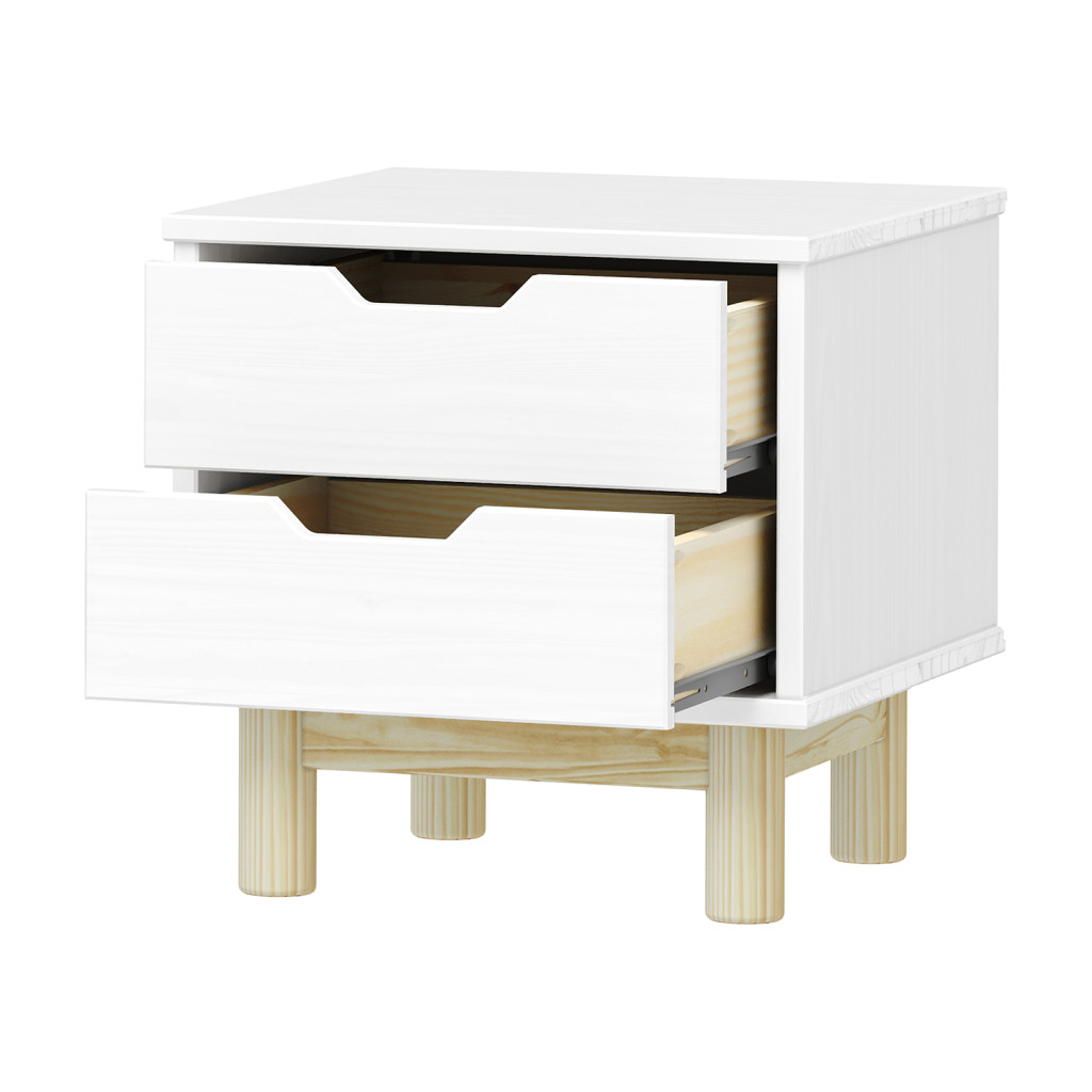 Dotaz na produkt Na splátky ještě dnesmateriál masiv borovice, barevné provedení bílý lak 2 zásuvky s kovovými pojezdy