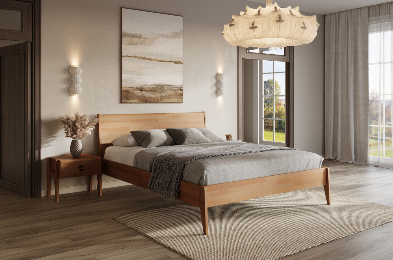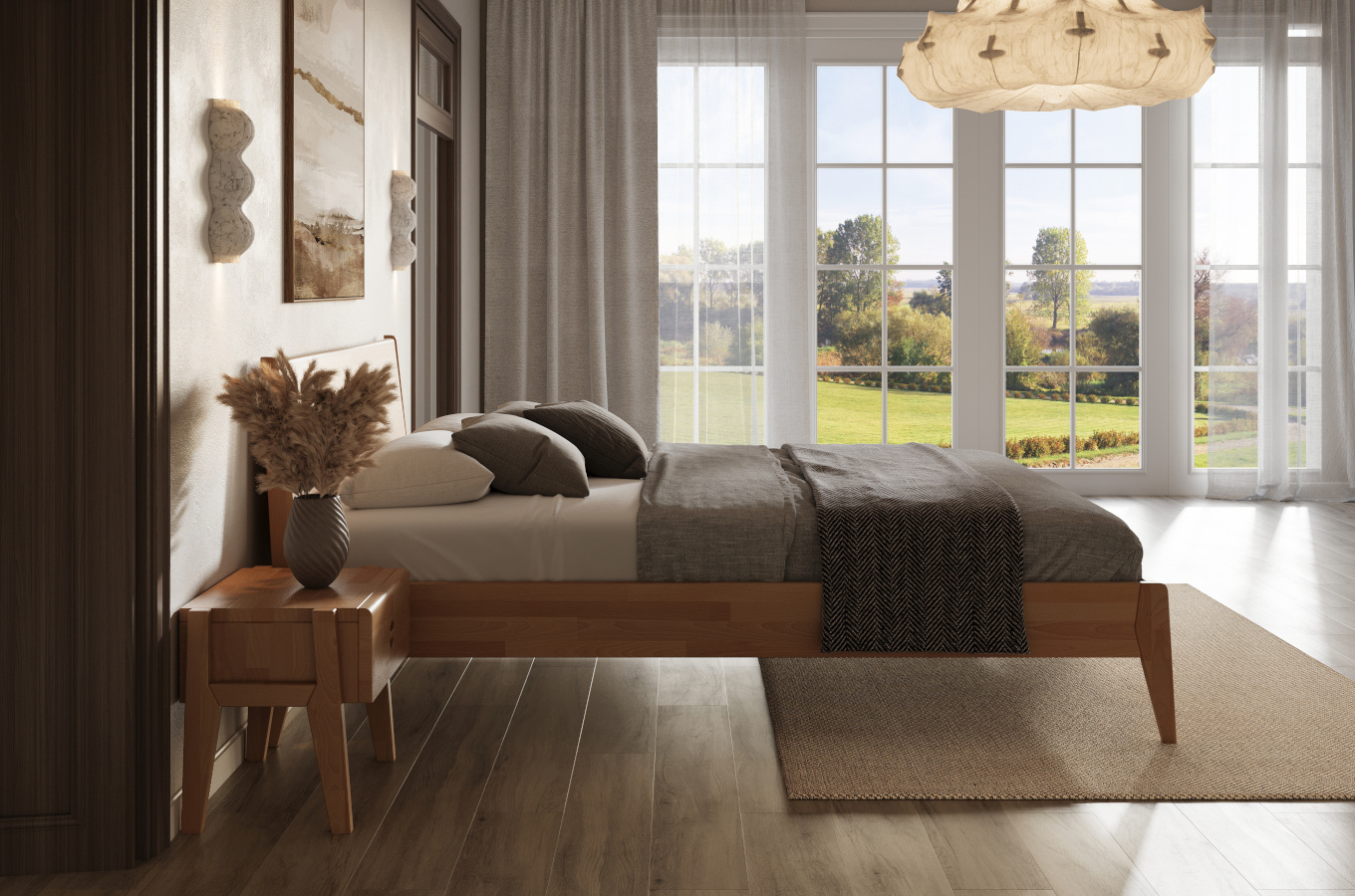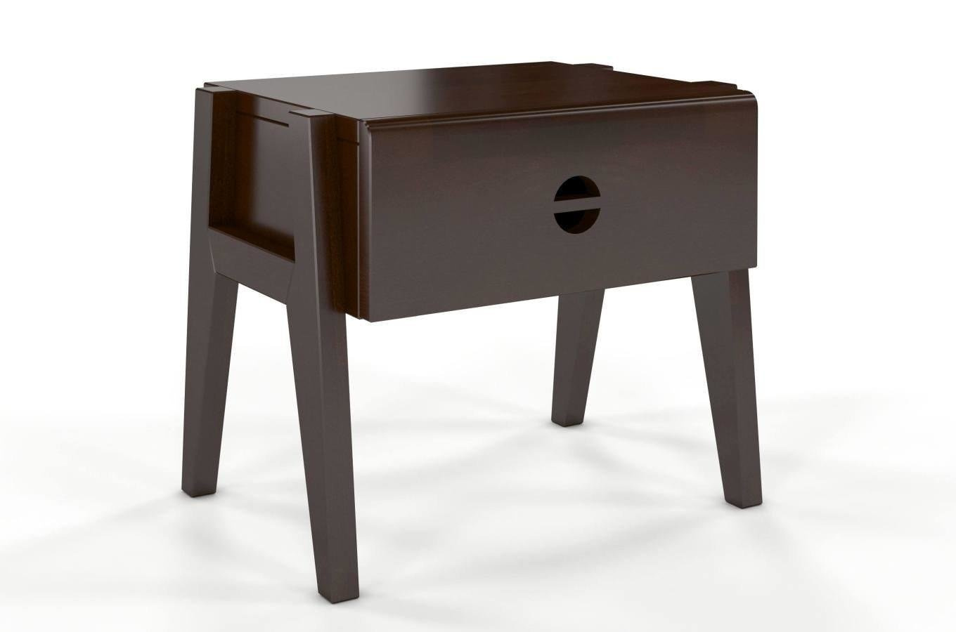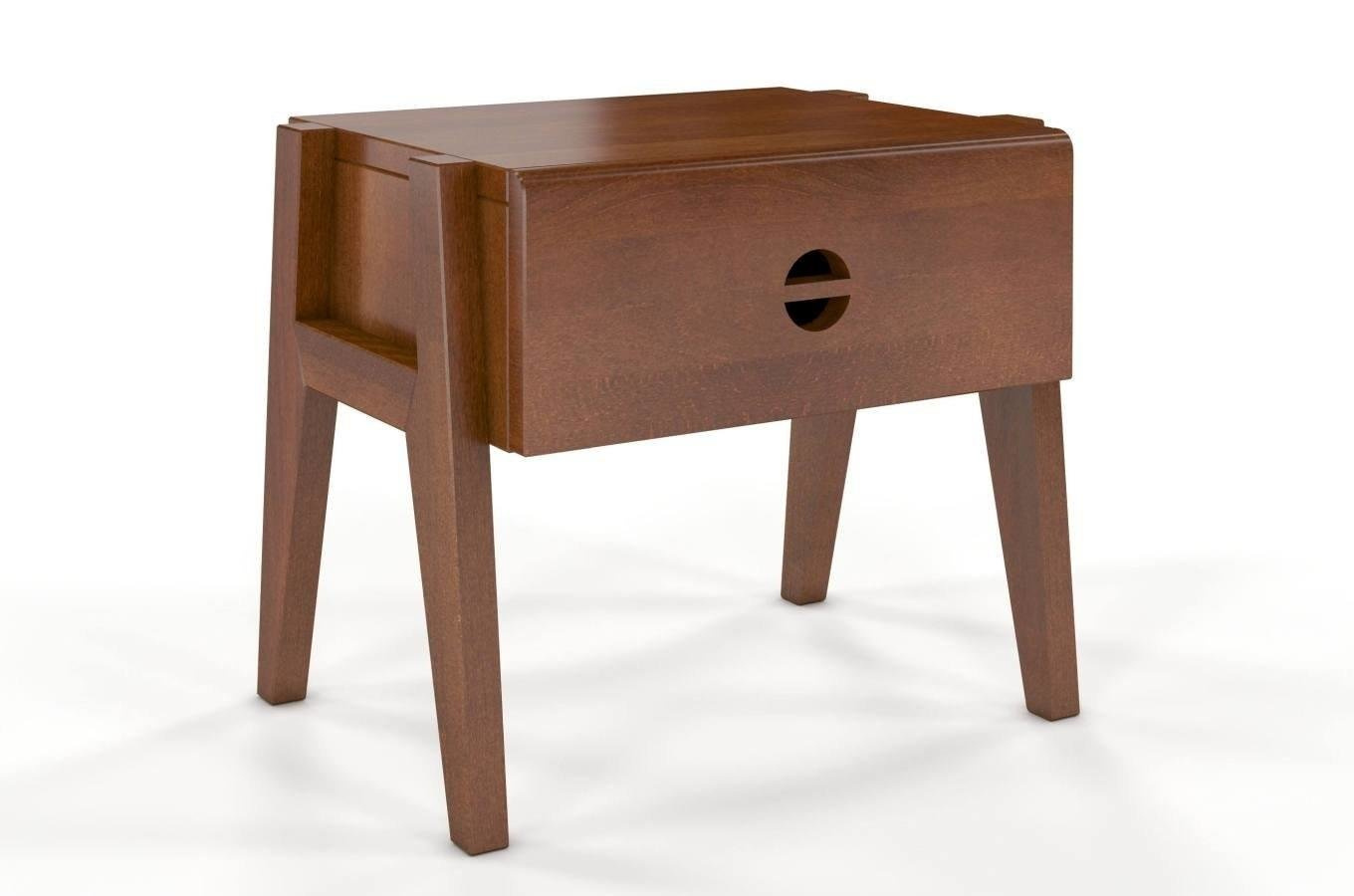 Vysoký dřevěný noční stolek, který zaujme svou jednoduchostí a všestranností. Stolek má zásuvku namontovanou na zajímavých a vysokých nohách, které odvážně obepínají její boční stěny. To umožnilo získat stabilní, jednoduchý, ale originální stolek, který bude nejen módním, ale především praktickým prvkem ložnice. Je vybaven zásuvkou, do které můžete schovat drobné předměty užitečné do postele, a horní část je ideálním místem pro noční lampu.