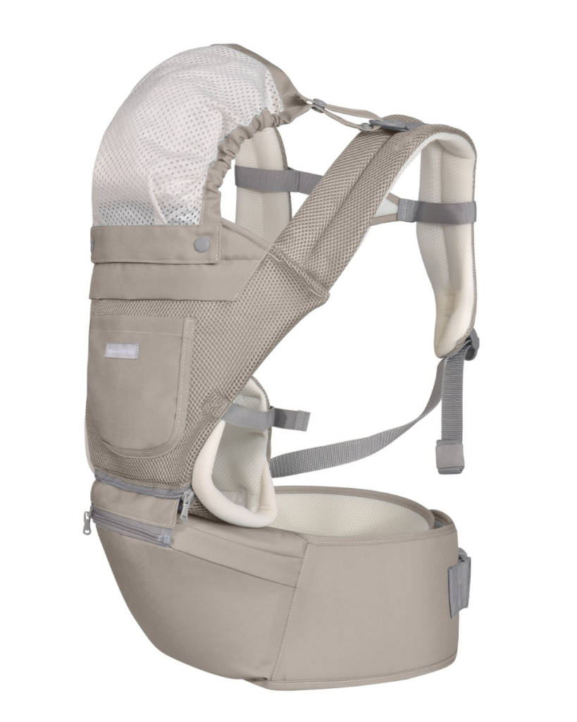 Široký bederní pás pomáhá rozložit váhu dítěte od pasu po horní část zad rodiče. Pohodlné nošení zaručují nastavitelné polstrované ramenní popruhy s hrudním pásem. Přední kapsa na zip umožňuje bezpečné uložení drobností.