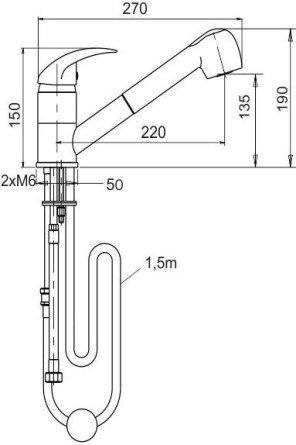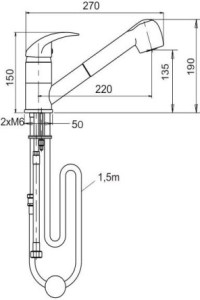 výška 190 mmvývod 220 mmkomfortní zóna 135 mmkeramická kartuše KEROX 35 mmbarva chrominstalace stojánkováovládání pákovés vytahovací sprškoudélka hadice 150 cmsoučástí baterie přívodní hadičky 500...