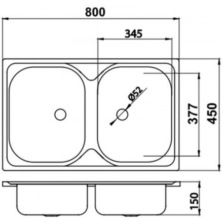celkový rozměr 800x450 mmrozměr dřezové nádoby 377x345 mmvýška dřezu 150 mmminimální šířka skříňky 800 mmmateriál - nerezbez odkapávací plochybez přepaduvhodný pro horní montáž na pracovní deskudřez...