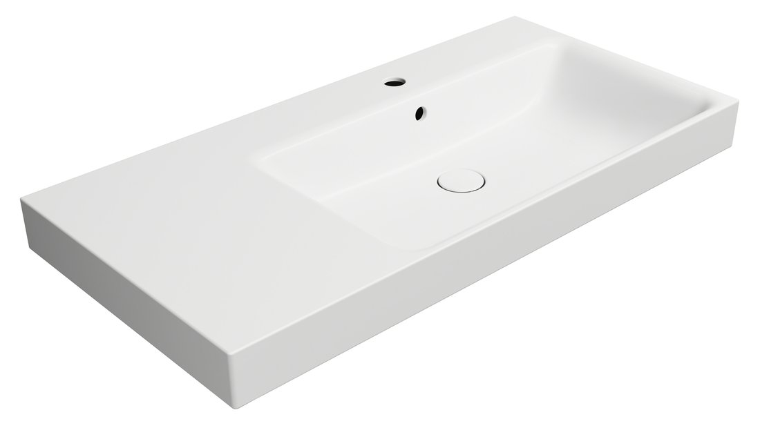 NUBES keramické umyvadlo 100x50cm, s odkládací plochou vlevo, bílá mat
