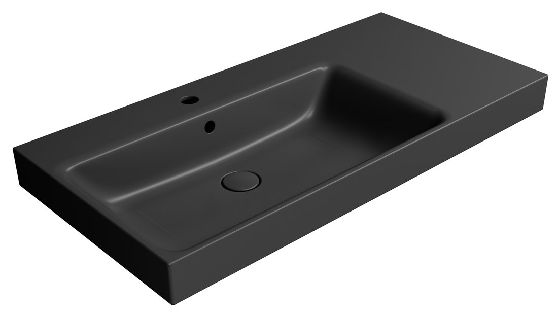 NUBES keramické umyvadlo 100x50cm, s odkládací plochou vpravo, černá mat
