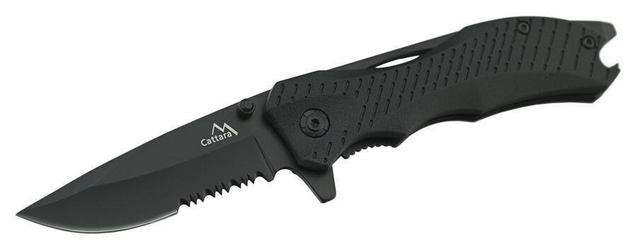 Dotaz na produktKompaktní a lehký zavírací nůž Cattara RAW využijete při stanování, na túrách, při rybaření, na výletech do přírody i doma na zahradě. Kdykoliv ho rychle otevřete jednou rukou pomocí výstupku na horní straně čepeli. Ve spodní části rukojeti se nachází pojistka, kterou ovládáte bočním posuvem palce. Na zadní části nože najdete nejen praktický otvírák na lahve, ale navíc i úderník pro rozbití skla v případě nouze.