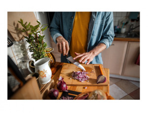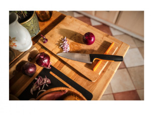 Dotaz na produktStředně velký, univerzální nůž se silnou čepelí je ideální pro krájení masa a zeleniny. Výška: 2,38 cm, délka: 35,5 cm, šířka: 9 cm. Hmotnost: 0,117 kg. Původní FIS číslo 1014195.