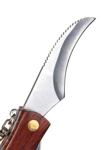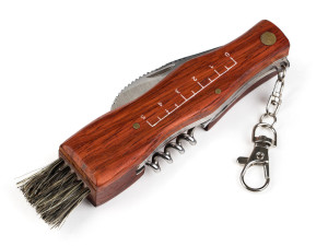 Nožík je skládací a obsahuje štěteček k očištění hub, nůž s ostrou čepelí, karabinku a vývrtku.