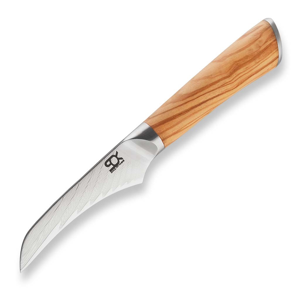 Dotaz na produkt Na splátky ještě dnesKuchyňský nůž Paring 80 mm značky SOK zastane v kuchyni hodně práce. Tento nůž se hodí konkrétně na okrajování ovoce a zeleniny nebo špikování masa. Damascénská ocel má vyšší tvrdost a odolnost vůči opotřebení, díky vzácné a unikátní kresbě oceli navíc získáte jedinečnou kombinaci krásy a luxusu s vynikajícími řeznými vlastnostmi. Nůž má ostří dlouhé 80 mm. Doporučujeme nůž i jako dárek k narozeninám nebo Vánocům pro vaše blízké.