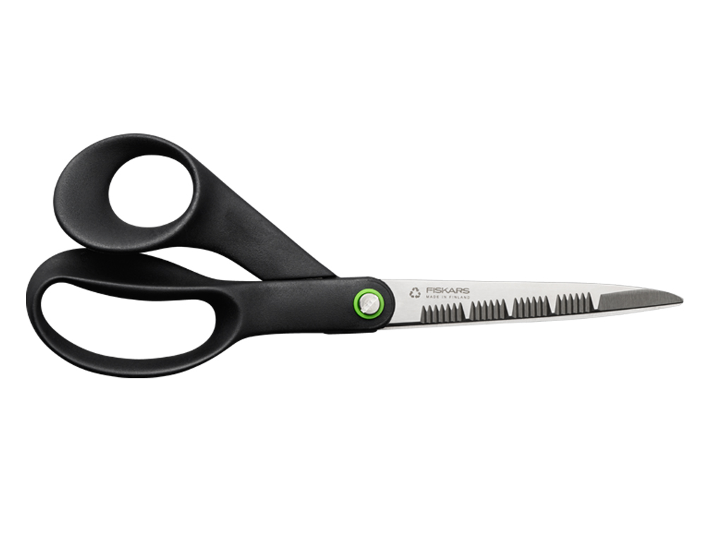 Dotaz na produktKuchyňské nůžky 21 cm jsou ideální pro stříhání bylinek a květin na zahradě. Vroubkované čepele drží materiály pro snadné stříhání, čepele z recyklované nerezové oceli jsou dlouhodobě ostré, ergonomicky navržená držadla jsou vyrobena ze směsi recyklovaného plastu a skelných vláken, provedení je určeno pro praváky a výrobek je vyroben z minimálně 70 % z recyklovaných materiálů. Rozměry: délka 1,5 cm, šířka 8,5 cm, výška 27,5 cm. Hmotnost: 0,09 kg. Obsah balení: 1 ks nůžek. FISKARS číslo: 1074545.