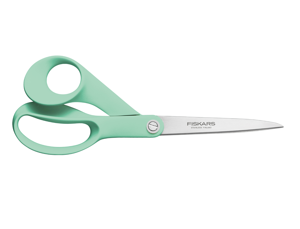 Dotaz na produktNůžky univerzální Mint 21 cm poskytují jedinečný komfort a střižný výkon a jsou ručně dokončované a testované. Jsou ideální na všechny druhy stříhání doma, ve škole i v kanceláři, odolné čepele z nerezové oceli jsou dlouhodobě ostré, ergonomicky navržená držadla zajišťují pohodlné používání, přítlak čepelí je nastavitelný a provedení je určeno pro praváky. Rozměry: délka 1,5 cm, šířka 8,5 cm, výška 27,5 cm. Hmotnost: 0,068 kg. Obsah balení: 1 ks nůžek. FISKARS číslo: 1084003.
