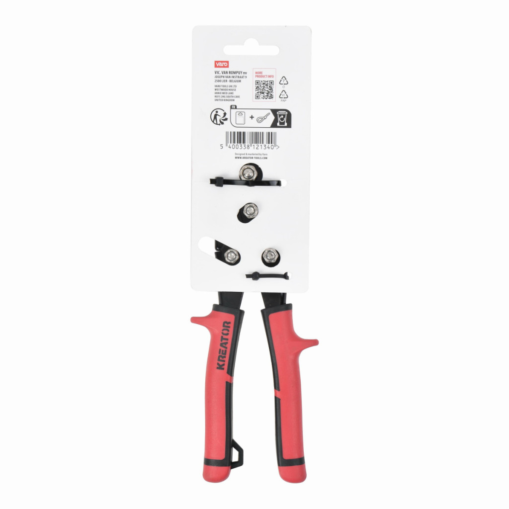 Dotaz na produktTyto nůžky na plech levé KRTH61902 z naší řady Kreator jsou ideální pro stříhání tenkých ocelových a hliníkových plechů. Lze je použít i k stříhání tvrdších materiálů, jako jsou plasty nebo kůže. Ergonomicky tvarované měkčené protiskluzové rukojeti zajišťují pevný a bezpečný úchop. Nůžky na plech mají délku 250 mm a lze je pro bezpečné skladování uzamknout.