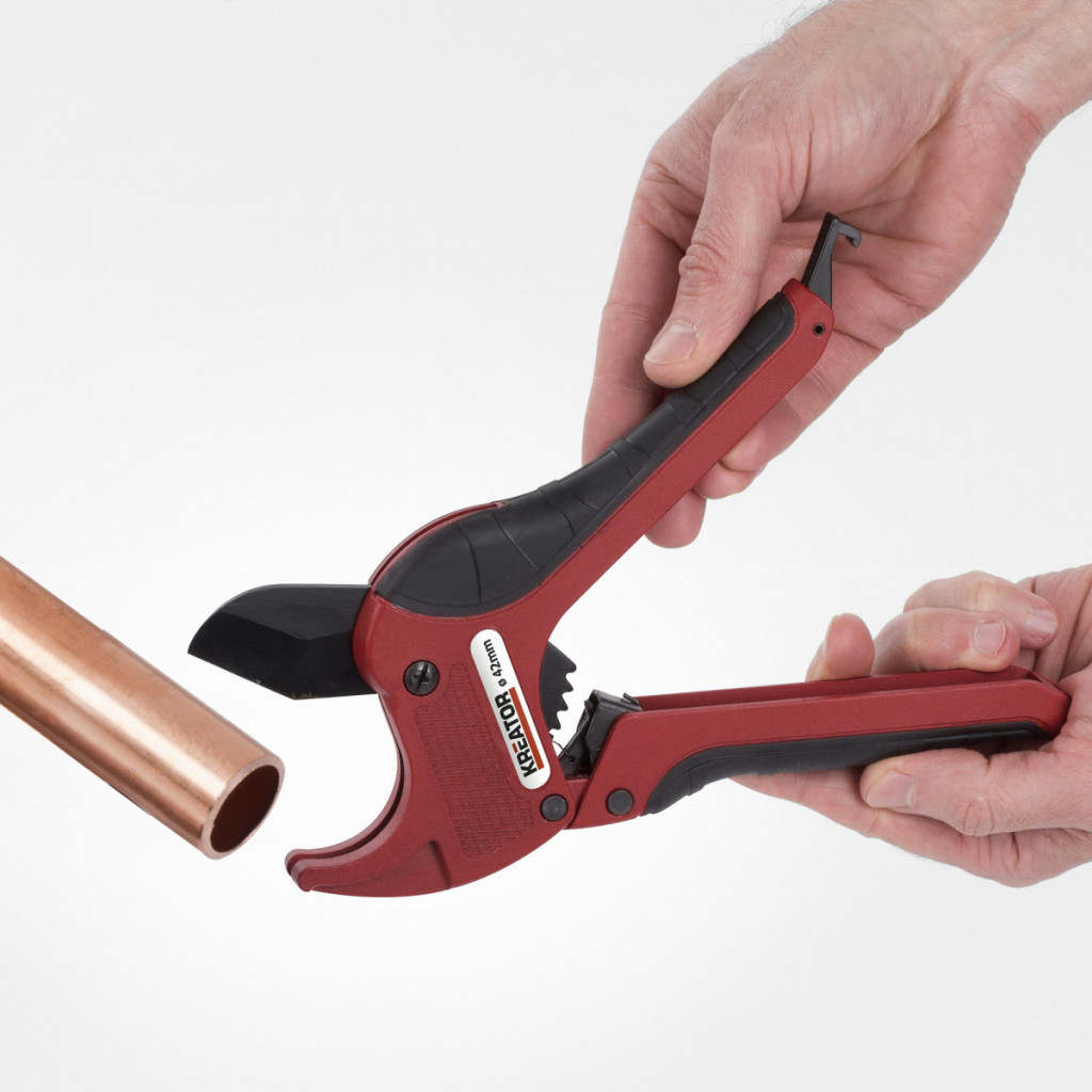 Dotaz na produktTyto vysoce kvalitní nůžky KRTH00603 od Kreator na trubky dokáží bez námahy stříhat hliníkové, měděné a PVC trubky o průměru 3 mm – 42 mm. Průměr je snadno nastavitelný, takže můžete bez námahy provádět kolmé střihy.