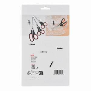 Dotaz na produktTato sada KRTH00405 od Kreator se skládá ze 3 kusů nůžek o délce 215, 170 a 140 mm. Jsou vyrobeny z leštěné nerezové oceli a lze je mýt v myčce nádobí. Čepele mají tloušťku 1, 2 a 1,7 mm. Nůžky jsou vybaveny pevnými plastovými rukojeťmi s měkkými vnitřními kroužky pro pohodlný úchop.