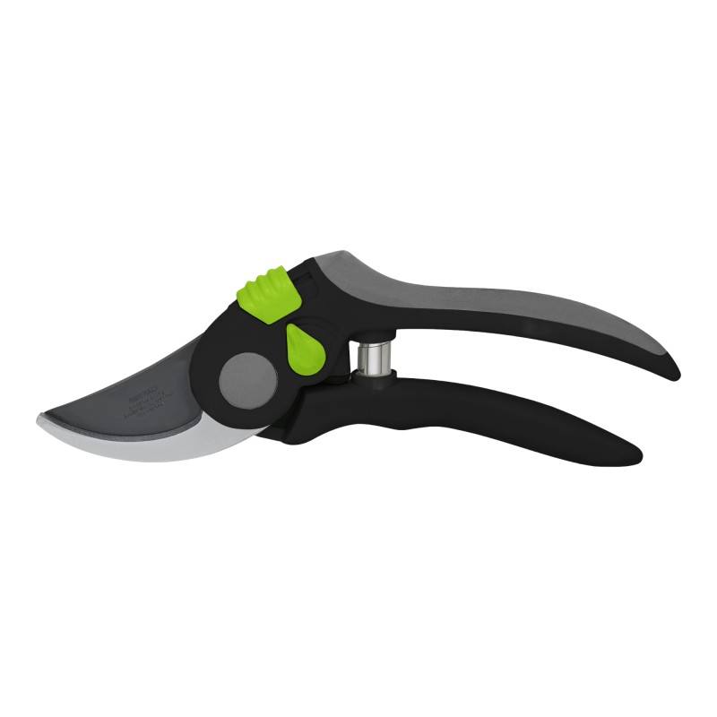 čepel z japonské oceli SK5 s vysokým obsahem uhlíku a teflonovým povlakemčepel (průchozí) na stříhání mladých výhonků a větvípohodlné nylonové rukojetiregulace otevírání rukojetíbezpečnostní zámek