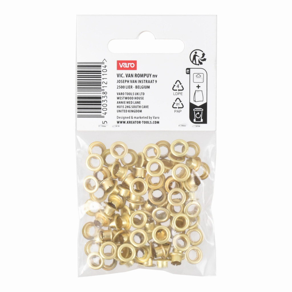Dotaz na produktTyto nýtovací očka KRTH62502 od Kreator mají vnitřní průměr 4,5 mm a lze je připevnit k textiliím a jiným tenkým materiálům pomocí kleští na nýtovací očka.