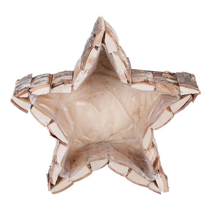 Dotaz na produktSkvělou volbou pro ty, kteří preferují přírodní materiály a rádi by skloubili jejich přirozenou krásu s praktickou funkcí, bude tento originální květinový obal ze dřeva ve tvaru hvězdy. Je dostatečně prostorný a šikovně tvarovaný, což umožňuje výsadbu širokého spektra okrasných rostlin a umístění na nejlepší zvolené místo dle vašich představ. Dřevěné obaly jsou poměrně lehčí oproti jiným, což má výhody ve snadnější manipulaci s nimi. Součástí produktu je i ochranná plastová fólie, jenž vyplňuje vnitřní část a chrání ji před vnějšími vlivy. Vytvořte si místo, které bude oplývat přírodní krásou a bude ladit s okolním prostředím díky této nápadité dekoraci s praktickým využitím.