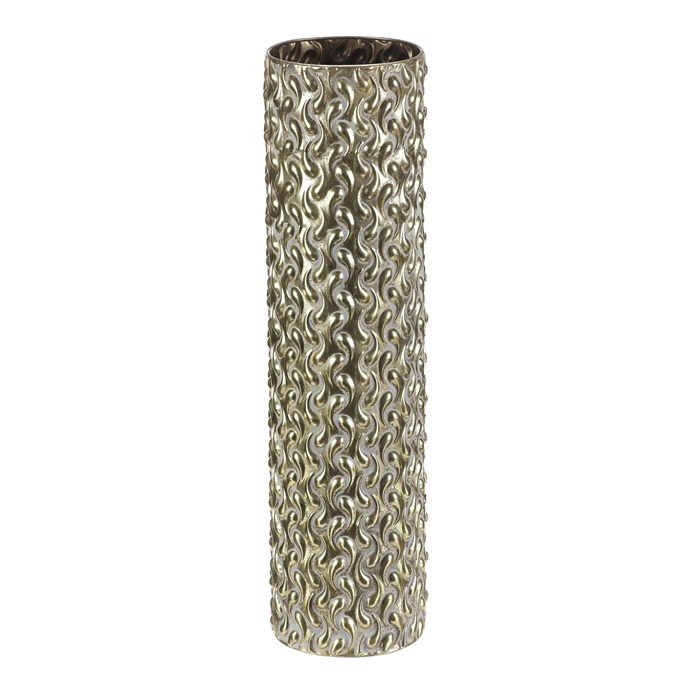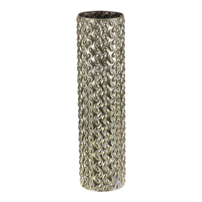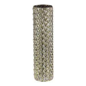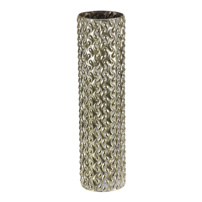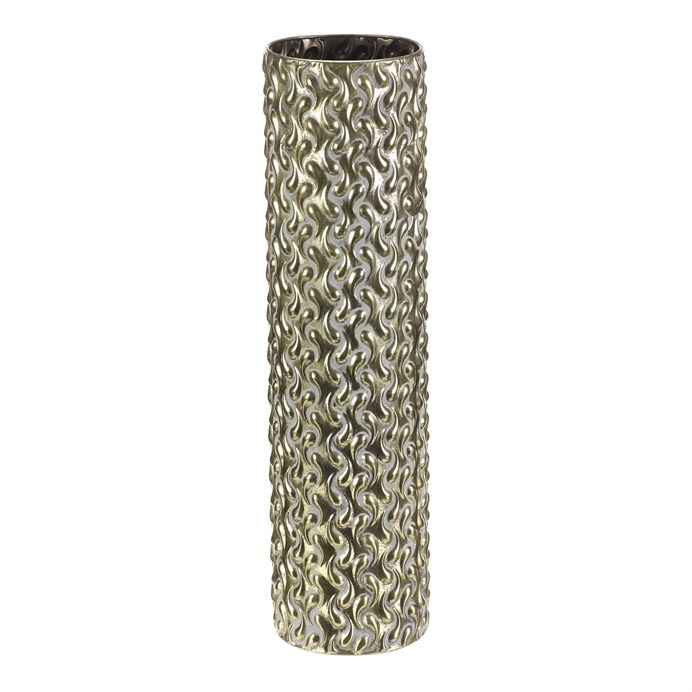 Dotaz na produkt Na splátky ještě dnesKovový obal ve tvaru sloupce s výškou 59 cm vyniká zlatým odstínem a výraznou texturou s vlnitým reliéfem po celém povrchu. Jeho pevné provedení zajišťuje stabilitu a dlouhou životnost, přičemž povrchová úprava dodává dekoraci luxusní vzhled vhodný pro moderní i klasické interiéry. Obal je ideální pro umístění květin nebo dekorativních prvků, které zvýrazní jeho elegantní design. Díky svému tvaru a rozměru se hodí na podlahu i na větší stolní plochy.