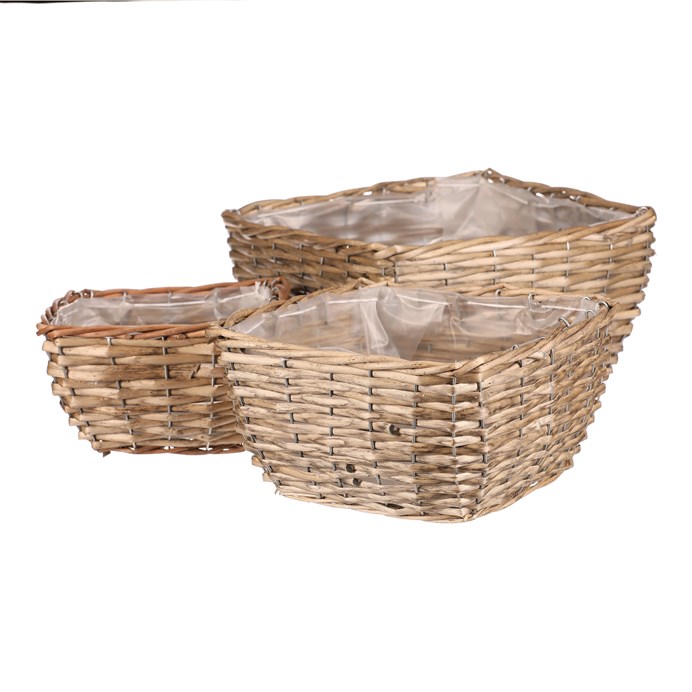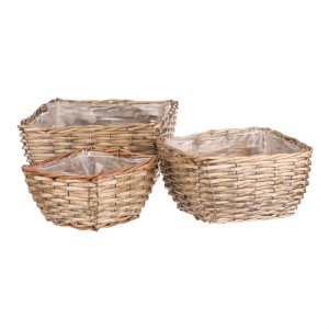 Dotaz na produktProutěný hranatý truhlík ve světlé přírodní barvě je skvělým řešením pro prezentaci vašich květin nebo dekorací. Sada zahrnuje tři různé velikosti, každá s ochrannou igelitovou vložkou, která chrání před vlhkostí a zajišťuje dlouhou životnost. Tento elegantní a praktický obal se hodí do každého interiéru i exteriéru, kam přináší dokonalé oživení a přírodní kouzlo.