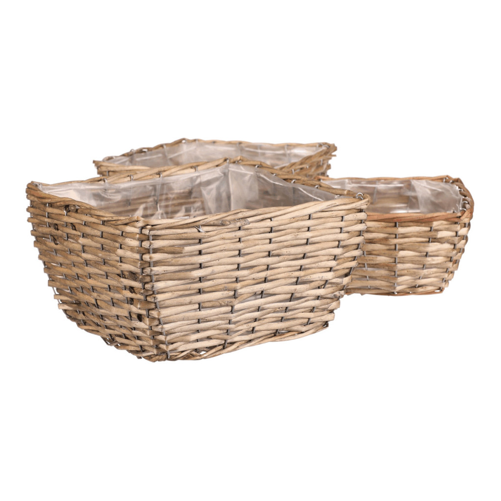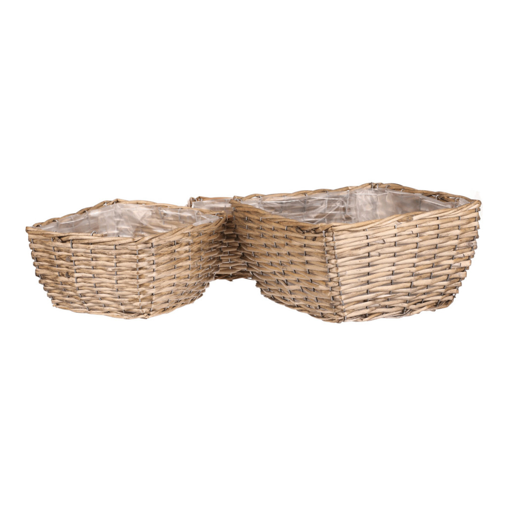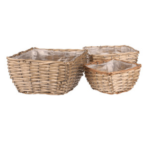 Dotaz na produkt Na splátky ještě dnesProutěný hranatý truhlík ve světlé přírodní barvě je skvělým řešením pro prezentaci vašich květin nebo dekorací. Sada zahrnuje tři různé velikosti, každá s ochrannou igelitovou vložkou, která chrání před vlhkostí a zajišťuje dlouhou životnost. Tento elegantní a praktický obal se hodí do každého interiéru i exteriéru, kam přináší dokonalé oživení a přírodní kouzlo.