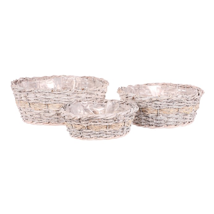 Dotaz na produktBílý ratanový košík je ideální pro elegantní aranžování květin a dekorací. Sada obsahuje tři různé velikosti, každý vybavený ochrannou igelitovou vložkou pro delší životnost a ochranu před vlhkostí. Jeho čistý a moderní vzhled skvěle zapadne do jakéhokoliv interiéru a dodá vašim rostlinám stylový rámec.