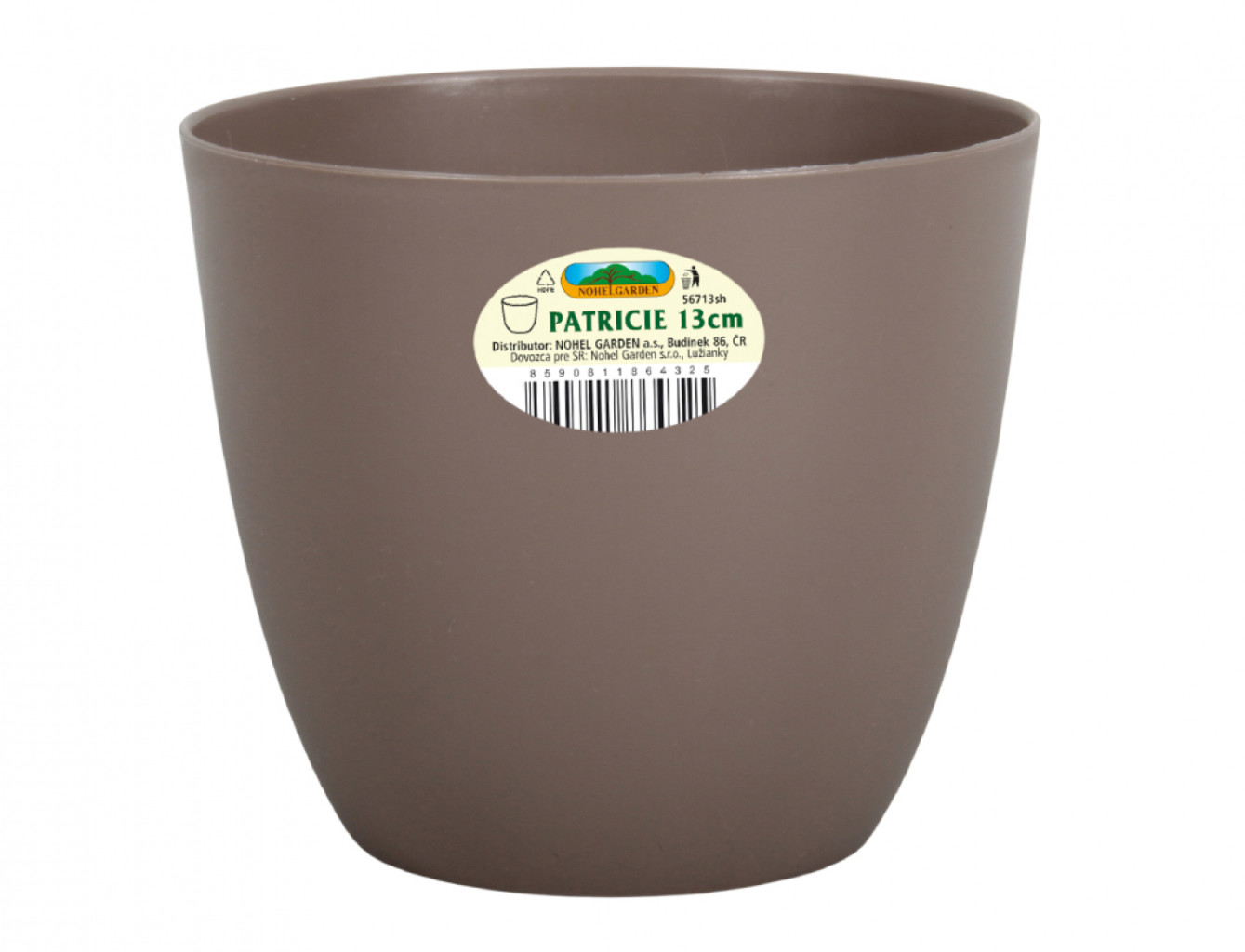 Dotaz na produktPlastový matný obal na květník standardního tvaru. Barva: hnědo šedá. Rozměry: d 13 x 12 cm.