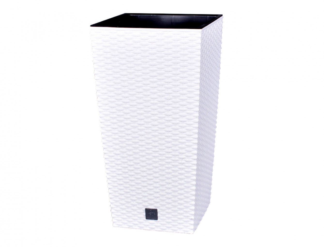 Dotaz na produktVysoký plastový obal na květník s texturou imitující ratanový výplet. Tento obal je skvělým doplňkem stylových interiérů. Je vhodný do interiéru i exteriéru, je odolný vůči UV záření. Součástí je černá vnitřní vložka. Barva: bílá. Rozměry: 33 x 33 cm, výška: 61 cm.