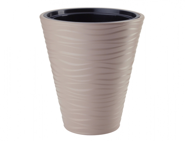 Dotaz na produktVysoký plastový obal na květník s vnitřní vložkou. Je vhodný do interiéru i venkovních prostor. Obal je vyroben z lehkého plastu a je odolný vůči UV záření i vůči mrazu. Jedná se o rotační nádobu. Průměr: 30 cm, výška: 34 cm.