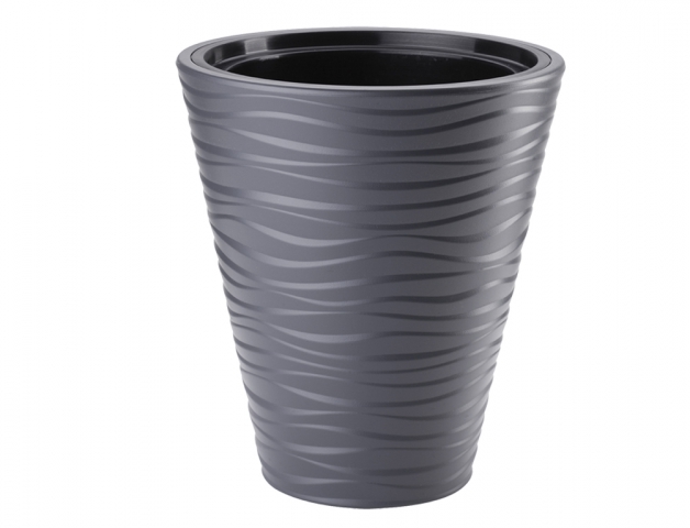Dotaz na produktVysoký plastový obal na květník s vnitřní vložkou. Je vhodný do interiéru i venkovních prostor. Obal je vyroben z lehkého plastu a je odolný vůči UV záření i vůči mrazu. Průměr: 40 cm, výška: 44 cm.