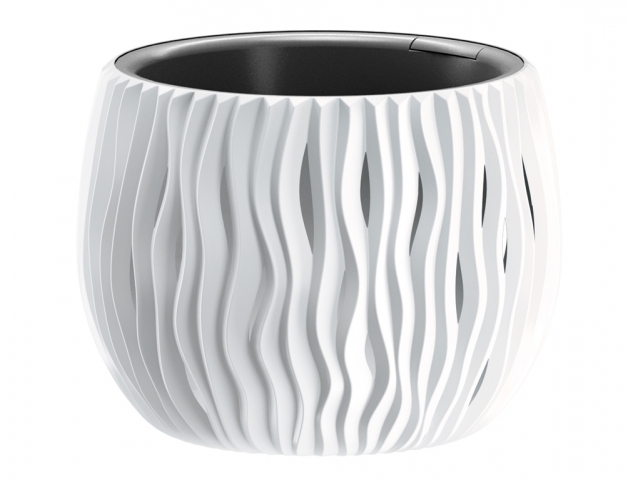 Dotaz na produktMatný plastový obal na květník s vnitřní vložkou. Je inspirován ručně tvarovanou tradiční keramikou. Hra světla dodává drážkám 3D rozměr. Průměr: 29 cm, výška: 19 cm. Barva: bílá.