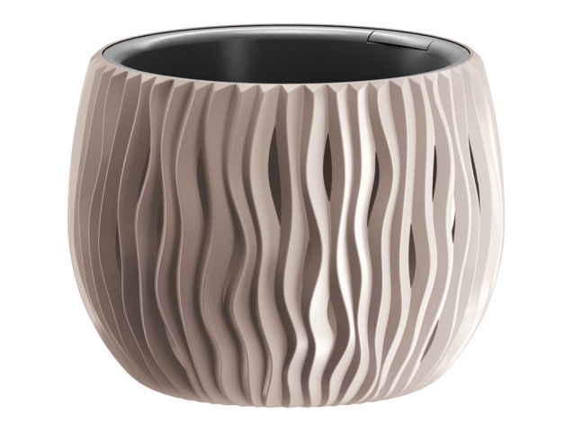 Dotaz na produktMatný plastový obal na květník s vnitřní vložkou. Je inspirován ručně tvarovanou tradiční keramikou. Hra světla dodává drážkám 3D rozměr. Průměr: 29 cm, výška: 19 cm. Barva: hnědo šedá.