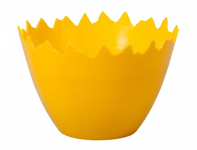 Dotaz na produktLesklý plastový obal na květník ve tvaru skořápky. Je vhodný též pro výsev jarního osení. Barva: žlutá. Průměr: 9 cm; výška: 7 cm.